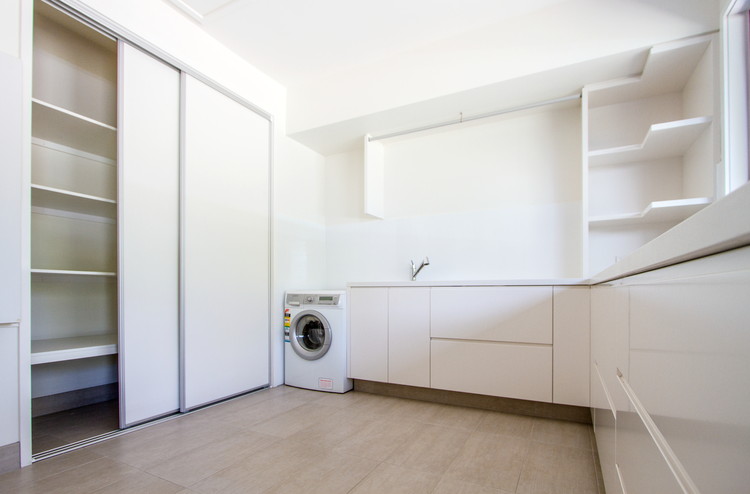 Smart design solutions included creating a timber casement bi-fold opening, connecting the upper and lower levels and adding interest on the otherwise expansive wall. The overhaul of the poolroom and laundry included all custom cabinetry and finishes, colour selection and space planning to ensure efficient use of the large spaces.